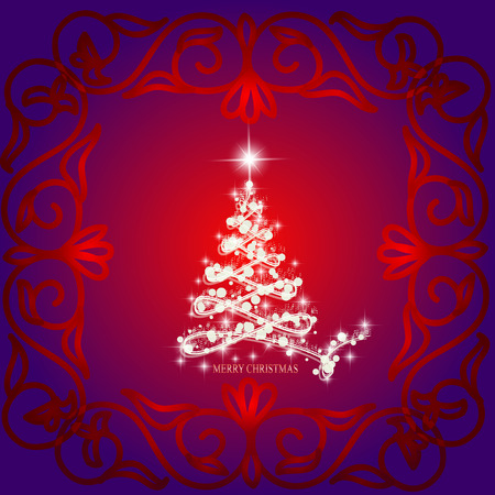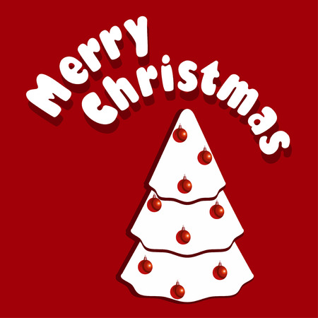 赤の背景に白のクリスマス ツリーと偽物のクリスマス カードのベクター イラストです のイラスト素材 ベクタ Image