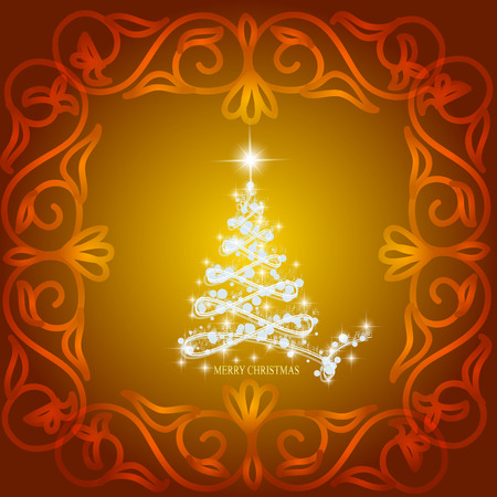 クリスマス ツリー 線 星の飾りと抽象的な背景は ゴールドと白の色のイラストです の写真素材 画像素材 Image