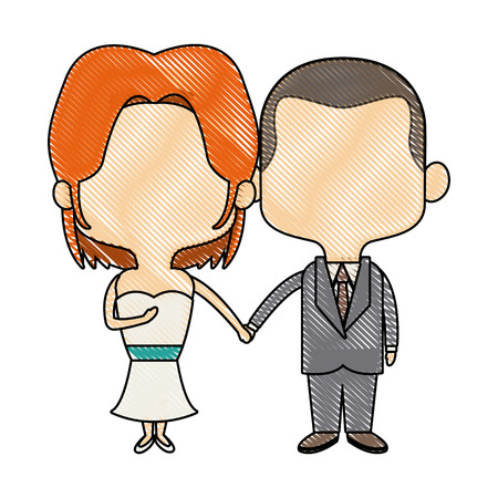 一緒に幸せなウェディングスーツでかわいいカップル夫婦妻ベクトルイラストのイラスト素材 ベクタ Image