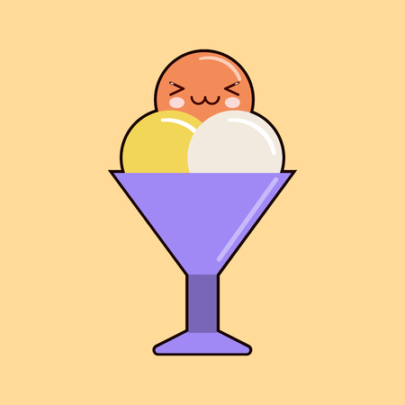 Kawaii かわいい 特徴 顔 Emoticon アイスクリーム Icon 漫画 幸せ Kawaii かわいい 平ら 特徴 イラスト 顔 Emoticon アイスクリーム ベクトル デザイン Icon Canstock