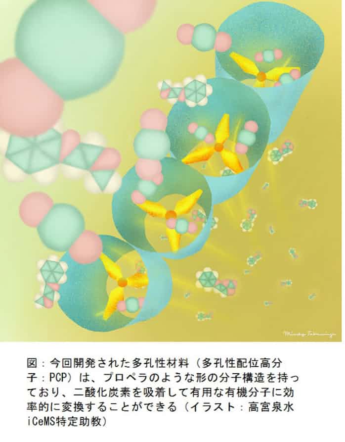 京大など 選択的に二酸化炭素を捉えて有用な有機分子に変換できる新しい多孔性材料を開発 日本経済新聞