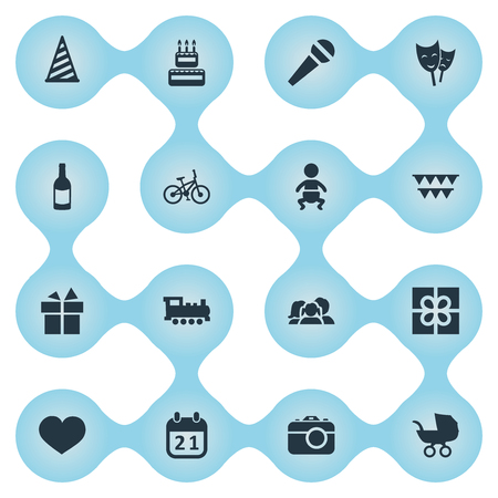 簡単な誕生日アイコンのベクター イラスト セット 要素の日 音声 鉄道および他の同義語 帽子 日 蒸気します のイラスト素材 ベクタ Image