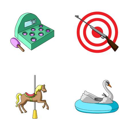 バット 銃でターゲット 白鳥の魅力 メリーゴーランドの馬とのゲーム 遊園地は アウトライン スタイルのベクトル シンボル ストック イラスト Web でコレクションのアイコンを設定します のイラスト素材 ベクタ Image