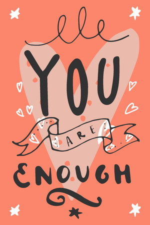 もう十分だ手書きの引用 レトロなスタイルでリボンとハートを持つヒップスターバレンタインデーハンドレタリングポスター ベクトルイラストのイラスト素材 ベクタ Image