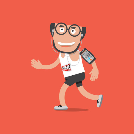 イヤホンとスマート フォンのベクトル イラストで男を実行しています のイラスト素材 ベクタ Image