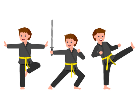 かわいいベクトル文字の子 武術カンフーのポスターのイラスト 子供着物 カンフー トレーニング ベクトル楽しい子 子供とスポーツのイラスト 子供カンフー 格闘ポーズを取るのイラスト素材 ベクタ Image