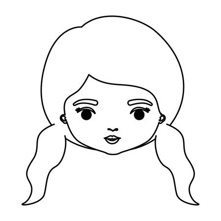 まっすぐ媒体髪型ベクトル イラスト似顔絵クローズ アップ正面顔女性のモノクロ シルエットのイラスト素材 ベクタ Image