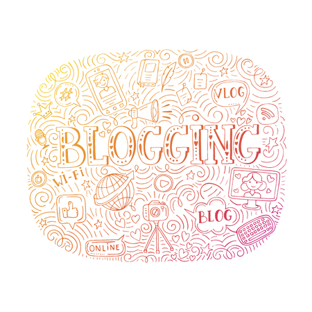 落書きベクトルイラスト女の子 男の子 ブログ 携帯電話 吹き出し ハート コンピュータ マイク 地球 ステッカー 手書き のブログ要素白の背景に分離のイラスト素材 ベクタ Image