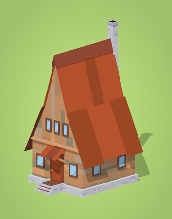 緑の背景に合掌造りの木造住宅 3 D Lowpoly 等尺性ベクトル図のイラスト素材 ベクタ Image