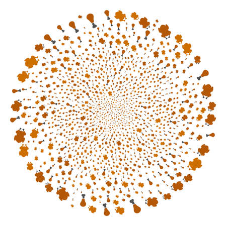 フライドチキンは丸いクラスターを爆発させる 花火球としてランダムフライドチキンのデザイン要素から整理されたオブジェクトパターン ベクトルイラスト スタイルは フラットな象徴的なシンボルです のイラスト素材 ベクタ Image