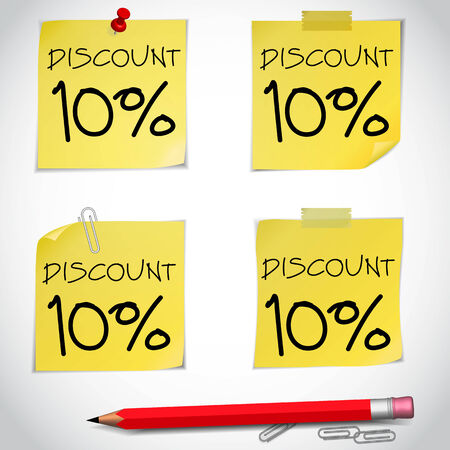 ピンと白で隔離される鉛筆で黄色粘着ノートに数字でテキストを割引します ベクトル イラストのイラスト素材 ベクタ Image 2294